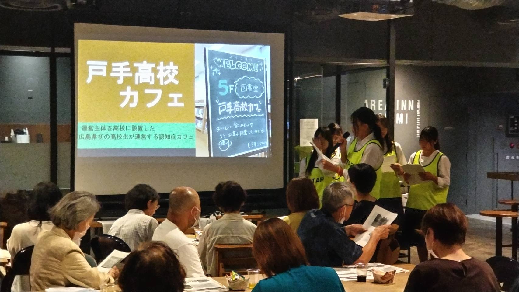 福山市でも様々なイベントが開催されましたが、その一つに、福山駅前の映画館のカフェスペースで開催された「認知症カフェ体験会」がありました。