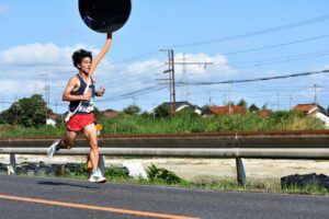 大会当日は晴天で気温が高く、ランナーにとって厳しい条件ではありましたが、レース終盤のなだらかな登り坂も粘り強く最後まで走り、タスキをつなぎました。結果として区間19位と、本人の納得いく結果とはなりませんでしたが、福山平成大学初の全国駅伝出場者として、出雲の地で陸上競技部の歴史を作ってくれました。福山平成大学は全国大会を目指す環境があると証明してくれた選手です。