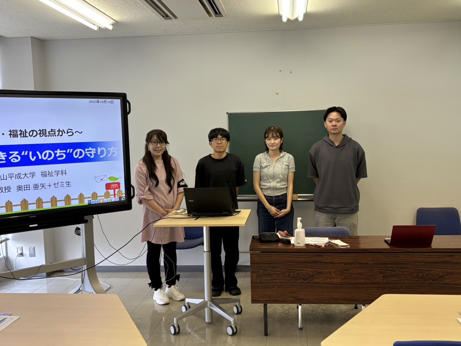 「あなたにできる“いのち”の守り方 〜医療・福祉の視点から〜」をテーマに、高校生と福祉学科・奥田亜矢先生と奥田ゼミの大学生が、「命を守るとは何か」を一緒に考える講義を行いました。