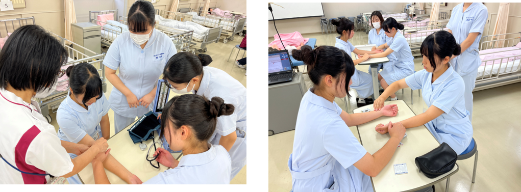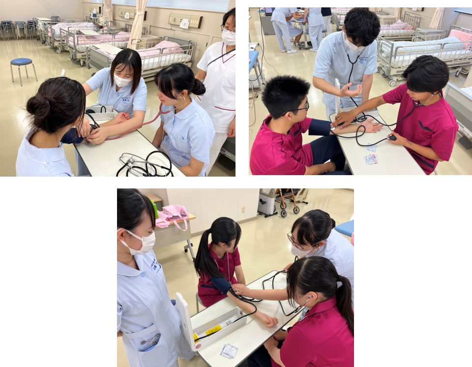 今回のテーマは「血圧を測ってみよう! 」でした。高校生のみなさんに看護大学生の実際を知ってもらうために、