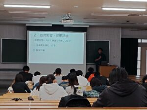 この講話を終えて学生たちからは、「学校現場の話を聞くことができてよかった」「ICTを活用した授業はと言われたらパワーポイントを使うというイメージしかなかったが、いろんなアプリや使い方があるのがわかってよかった」というコメントが寄せられました。