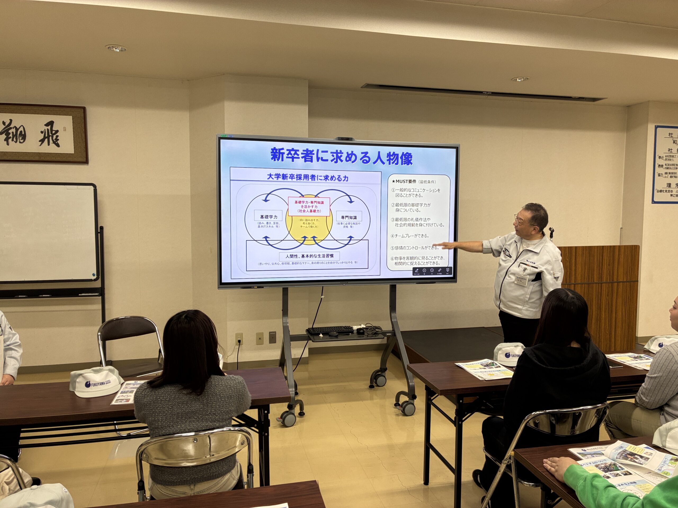2024年3月に経営学科を卒業した川原さんに同社の概要と主力製品を紹介して頂いたあと、川原さんの上司の卜部様に同社の求める人物像について説明していただきました。