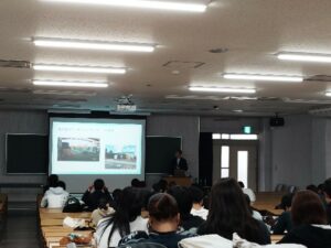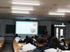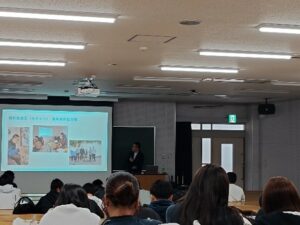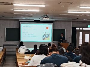 スポーツ企業情報演習で卒業生による講話の第3回目が11月12日(水)に行われ,水田悠介さん(健康スポーツ科学科12期生:JICA海外協力隊)にご登壇いただきました.