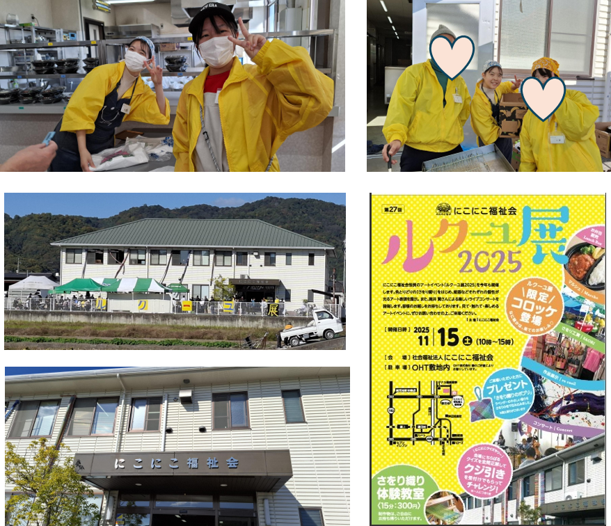 11月15日(土)社会福祉法人 にこにこ福祉会(福山市神辺町)にて行われた「ルクーユ展2025」のイベントへ看護学科1年生の2名がボランティアとして参加しました。