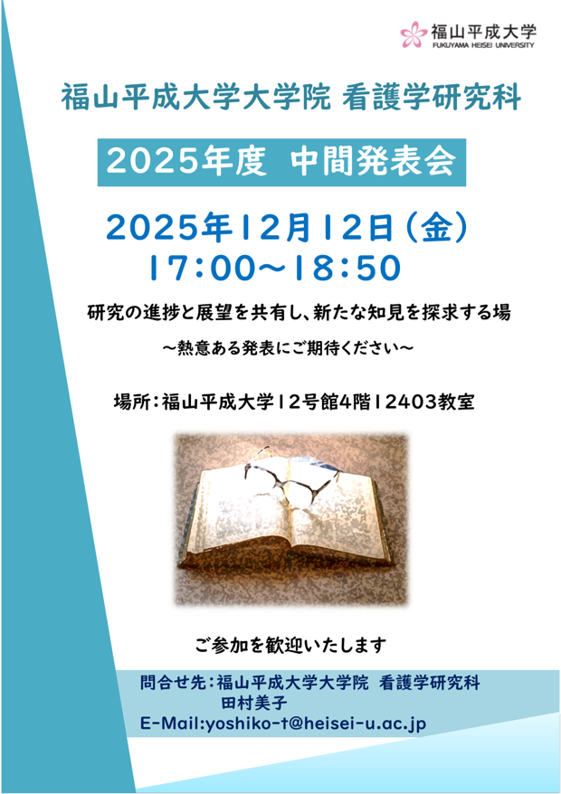 看護学研究科では、以下のとおり中間発表会を開催いたします。