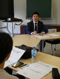 今回のゲストスピーチでは、今後ますます本格化する就職活動を中心に、ゼミ生との質疑応答を挟みつつ、先輩としての経験談を語っていただきました。