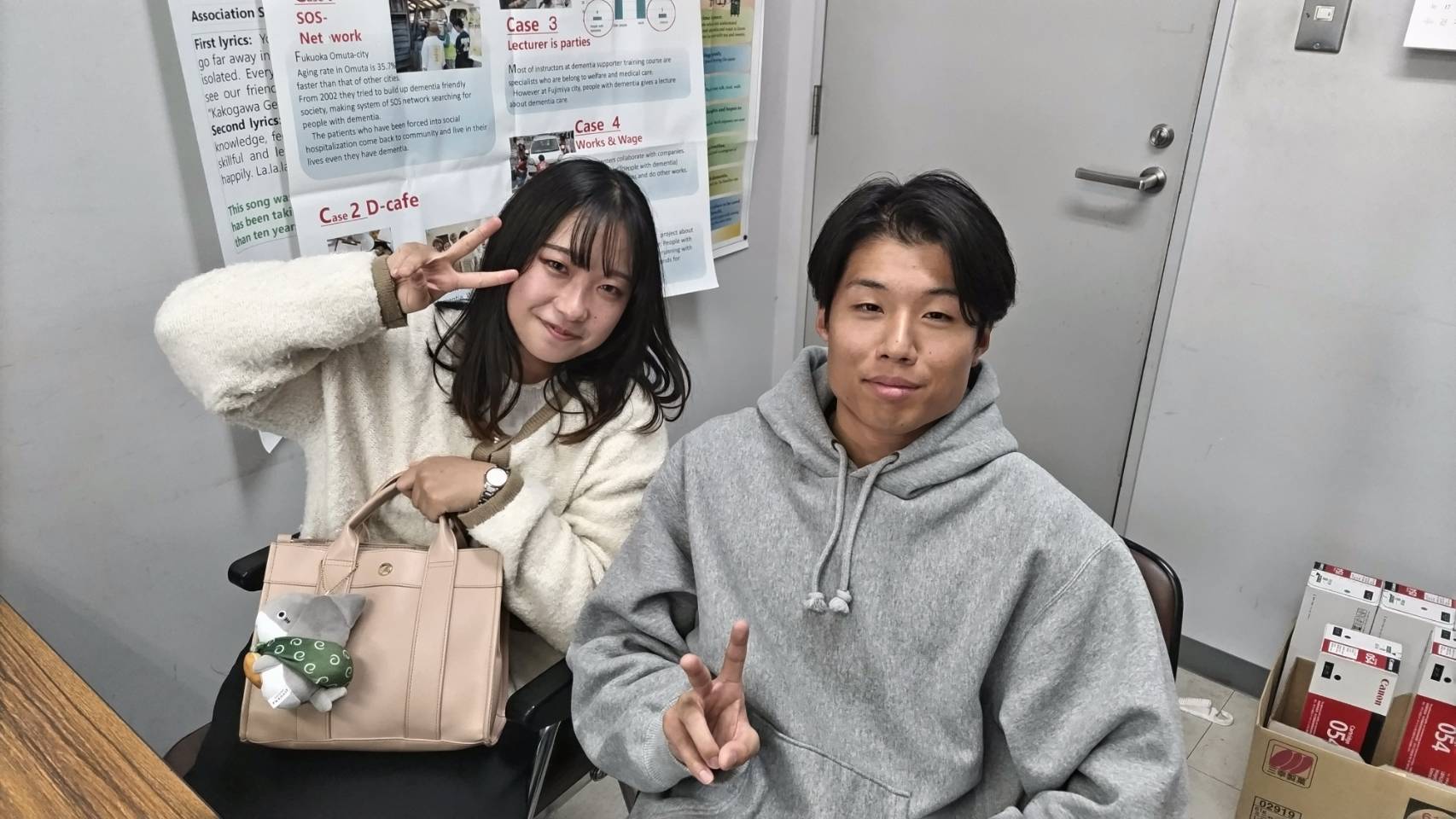 1年前に福山平成大学福祉学科を卒業し、障がい者支援施設で社会福祉士として活躍している寺本さんが夜勤明けに、会いに来てくれました!