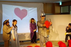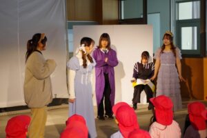 4月から準備を始め、24名の学生が出演や舞台づくりに参加。役者だけでなく、背景、音響、衣装なども学生自身が担当し、みんなで一つの舞台を完成させました。