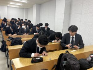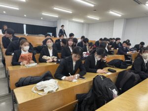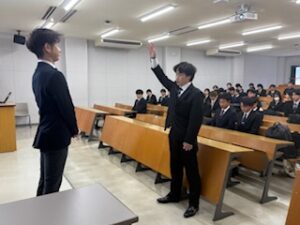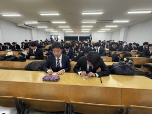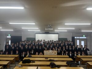 1月28日は学科での就職出陣式が行われました。3年生が一堂に会し、高本学科長をはじめ、各先生方からエールをもらいました。