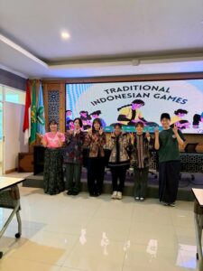 インドネシアの伝統的な衣服や遊びをご紹介いただき、実際に体験することができました。