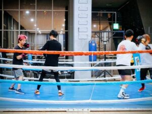 練習の合間には,ボクシングのアドバイスだけでなく,資格や就職,教員採用試験の話など学生たちの質問にも答えてくれていました。