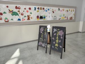 まずは、高校生の皆さんを迎えるため、学生が手描きの立て看板を制作!温かい雰囲気で皆さんをお迎えする準備をしました。