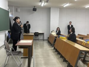永井純子研究科長からは、楽しかったと思える岡本さんの素晴らしさ、修士を取ることの価値や、これからもわからないことを更に研究し明らかにしてほしいと激励の言葉がありました。