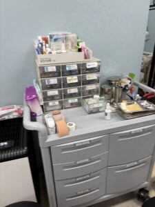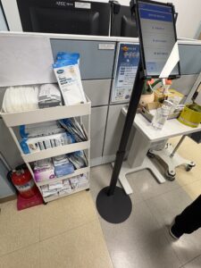 入口にはタブレットが設置されていて、どのような用件で来室したのか生徒が入力します。保健教師が1日40件もある来室を効率よく把握できるしくみとなっていました。