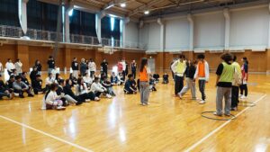 出発前の午前中は、本学の第1体育館でレクリエーションを行いました。