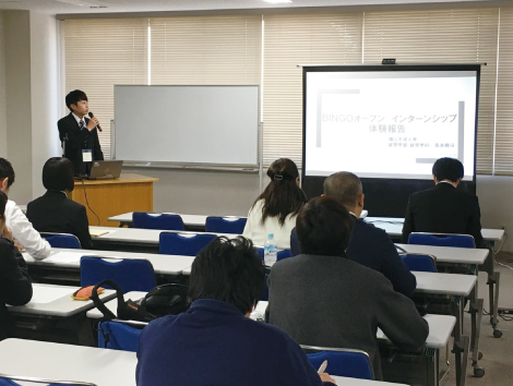 地元企業や自治体などとの連携に基づき、企画・運営されるインターンシップの授業。備後地域・広島東部地域などの地元企業で就業体験をすることで、働くことの意義や社会人としての在り方を学ぶことができます。就職活動に活かせる経験となるだけでなく、地元企業とのつながりをつくるきっかけにもなる実践的な学びの機会です。