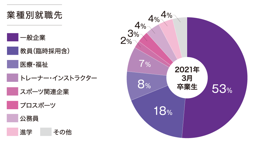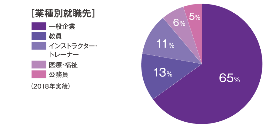 勉強とスポーツを両立。教員や健康運動指導者養成の積極的な取り組みで、総合力と人間力を兼ね揃えた健康社会のリーダーとなる人材を育成し、憧れの分野で活躍する卒業生を多数生み出しています。