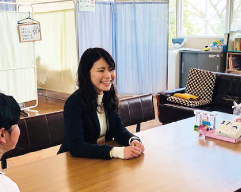 2年次の野外実践演習では、カヌー、浅瀬横断、ロープレスキュー等を体験し、川遊びの楽しさと川に潜む危険について学び、仲間との絆や達成感、自分で考え最善を尽くす能力を得たと感じています。大学では自分の隠れていた才能や新たな考えを見つけて活かせる、まわりのサポートがあります。コミュニケーションが苦手な人でも活躍できる場があることが一番の魅力だと感じます。私は身についた力を活かし、「先生のおかげで元気出た!」と生徒に言ってもらえる養護教諭を目指し、頑張っています。