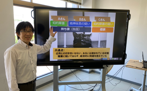 多頭飼育崩壊の多くは、福祉的支援が必要な人が起こしています。また、高齢者がペットと暮らすことはとても意義のあることですが、突然の入院や死亡によってペットが残されてその対応に福祉現場が苦慮しています。「ペットと人間福祉学」は、そのような問題に対応できる福祉専門職を養成するための講座です。