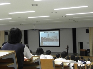福山平成大学の施設・設備の紹介、各学科の概要、学生の課外活動状況等の説明を行い、最後に大学の入試制度や奨学金等について説明を行いました。
