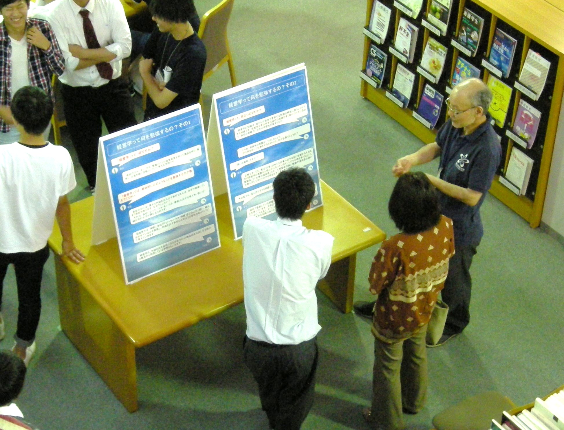 各学科の紹介や在学生たちの写真などのパネル展示を、自由に見て回ることができます。