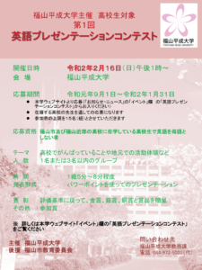 福⼭平成⼤学主催 第1回 英語プレゼンテーションコンテストを開催します!