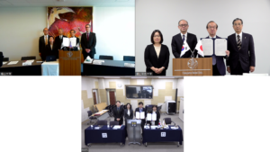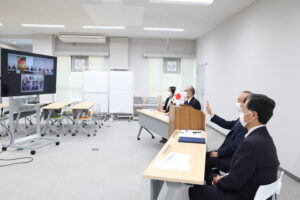 福山平成大学は釜山外国語大学校との「学術交流に関する協定」を結び、11月2日(水)に、調印式を行いました。調印式は釜山外国語大学校と本学と共に今回一緒に協定を結んだ福山大学を3元中継で結んで遠隔で行いました。