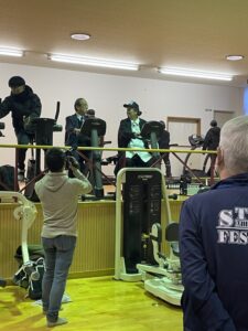 大窪さんと学長が学内の施設を紹介したり、福祉学科の取り組みや、看護学科の