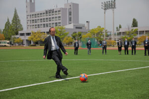 冨士学長により人工芝改修後初めてのキックオフをしていただきました。