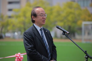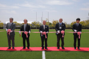 福山平成大学グラウンド内人工芝改修工事完成によるオープニングセレモニーが執り行われました