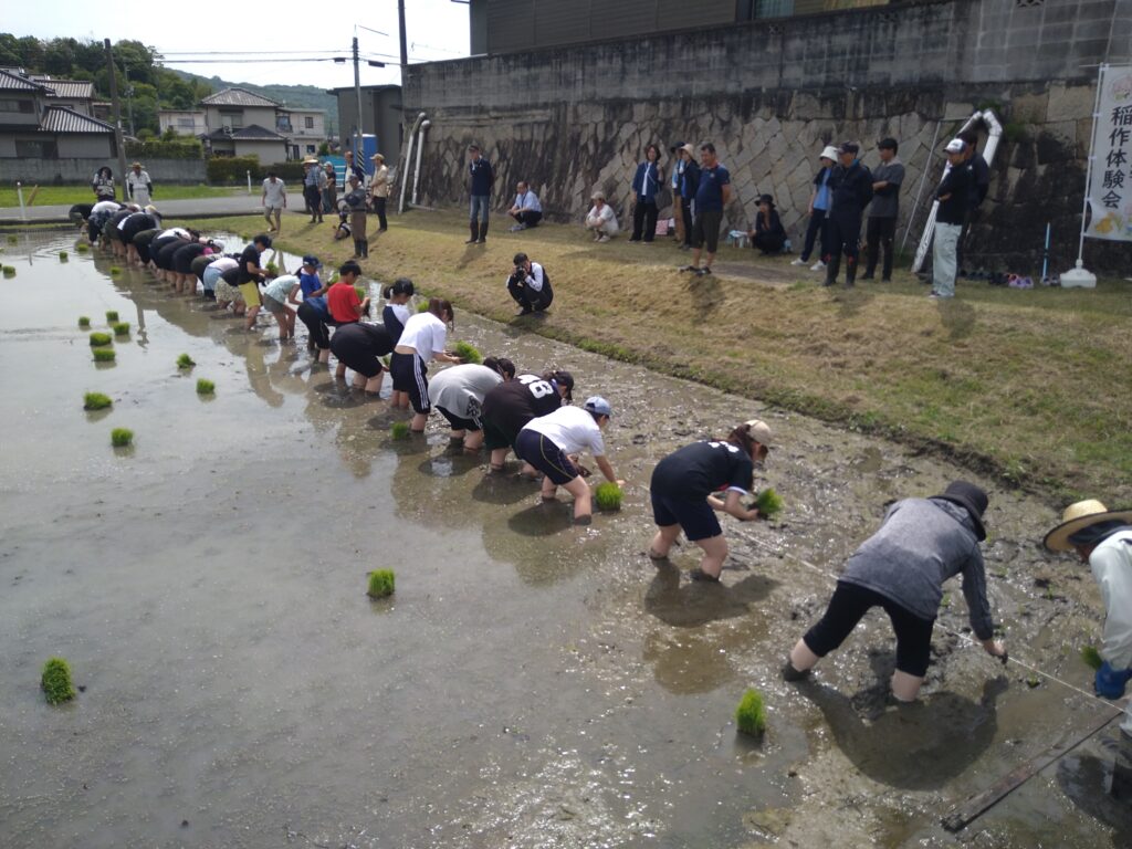 福山平成大学稲作体験会による田植えが行なわれました