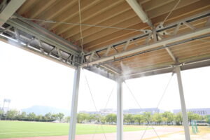 このような中、福山平成大学グラウンドにミストシャワー装置が設置されました。