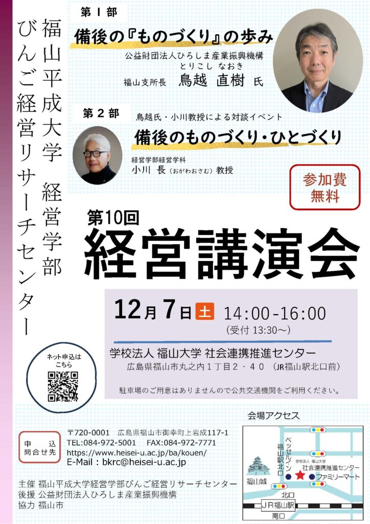 びんご経営リサーチセンター 第10回「経営講演会」開催(12/7)のお知らせ
