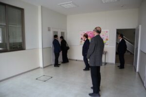 当日は、福山大学の大塚学長の案内で来られ、冨士学長との会合のあと、キャンパス内を見学しました。